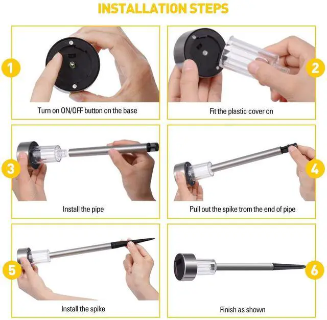 SUNNESTOutdoor Solar Lights absorb solar energy during the day and automatically turn on at dusk for hassle-free and energy saving illumination. Please make sure to switch on the ON/OFF button under the light cover before installation.