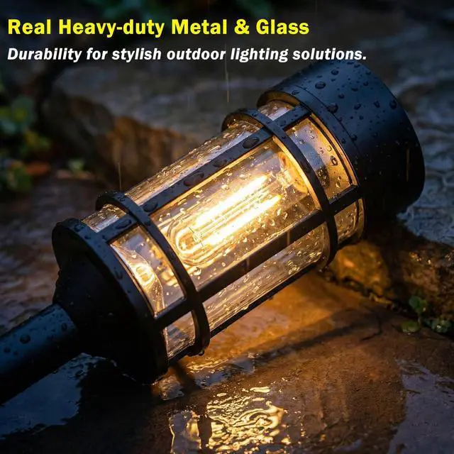 Solar lights made from stainless steel, glass, and durable plastics for withstanding outdoor conditions like rain, snow, and hot sun