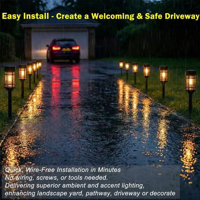 Illuminate the pathway driveway walkway. 3000K warm white solar light to create a cozy atmosphere.