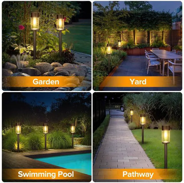 BRIGHTER & 3000K WARM LIGHTING Our upgraded LED filament bulb emits a warm white glow of light, surpassing the brightness of other solar lights. The solar pathway lights outdoor with high-transparency plastic lampshade enhances light diffusion, ensuring an even, gentle brightness.These waterproof outdoor solar lights can project unique light and shadow, creating a romantic and warm atmosphere for your pathway, flower bed, or garden landscape.