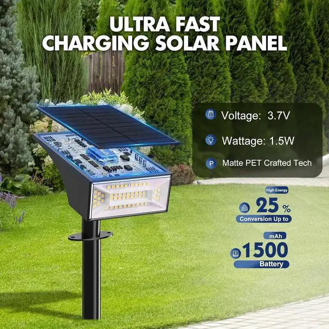 [25% Solar Conversion Efficiency] PET Polycrystalline Silicon panel charges 1500mAh battery in 5hrs, delivering 12-18hrs runtime. Auto dusk-to-dawn sensor works 365 days/year, 100% energy-free.