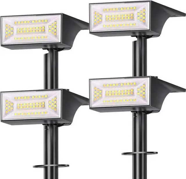 [56 LED Super Bright Spotlights] Ultra-bright solar spotlights with 56 upgraded LEDs beads, 270° adjustable angles & 6 dimmable levels (10%-100% brightness). Perfect for illuminating large yards, pathways, and architectural features.
