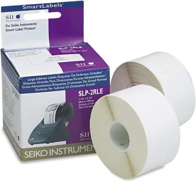 Fast and easy labeling. Seiko quality and reliability. Label Size - text: 1.5" x 3.5"; Label Color(s): White; Machine Compatibility: Seiko SLP Series Smart Label Printers 200, 400, 600; Catalog Description: Address Labels.