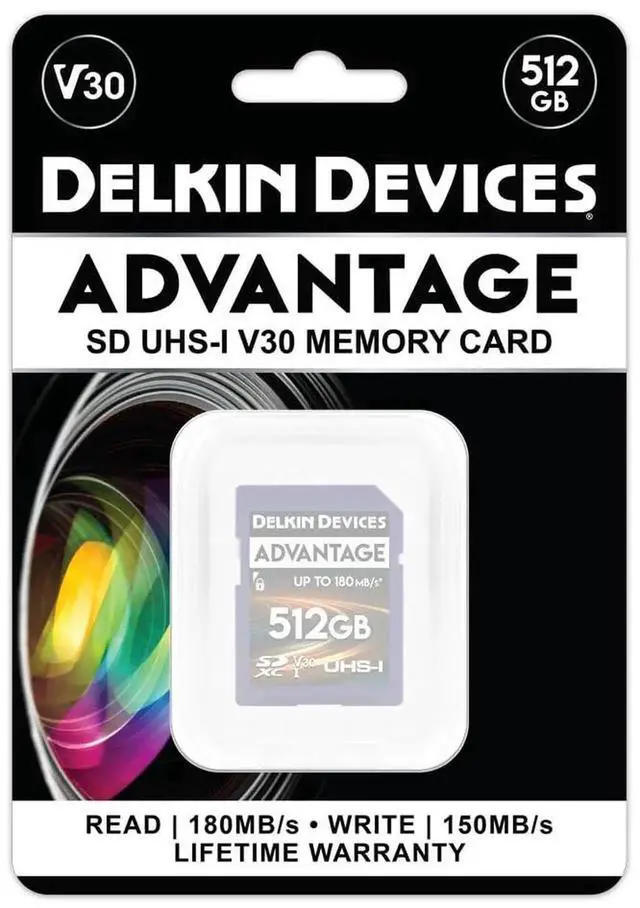 Elevate your photography and videography experience with the Delkin Devices SD CARD 512GB Advantage Card. Engineered to meet the rigorous demands of professional creators, our high speed SD card delivers data transfer speeds of up to 180MB/s read and 150MB/s write. Whether you're capturing cinematic 4K UHD videos or high-resolution photos, Delkin's camera SD card ensures smooth and uninterrupted recording, allowing you to focus on capturing every detail with precision. Tailored for your DSLR or advanced camcorder, the Delkin Devices 512 SD card excels in challenging shooting environments. Its robust construction includes shockproof, water resistant, and X-ray proof features, providing ultimate protection for your valuable data wherever your creativity takes you.