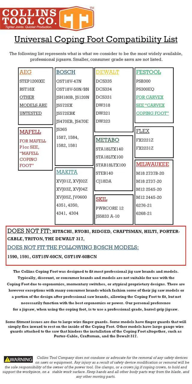 Collins Tool Company Coping Foot