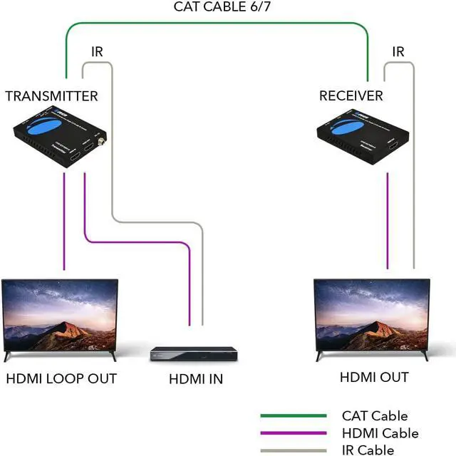 HDMI Loop-out - Connect HDMI display to the transmitter (sender) for an output to local display near the HDMI source.