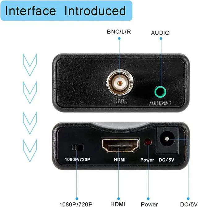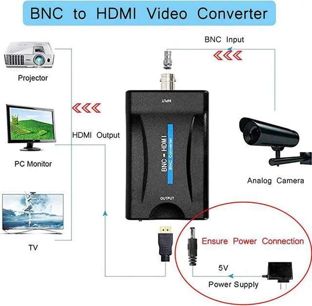 Plug and Play *This converter is a single-line conversion.BNC Input Interface:connect to the camera,CCTV Monitor,STB. Dedicated Audio Port of the BNC connector:For inputting sound signals. HDMI Output Interface:connect monitors,HDTVs,HD projectors,etc.(You can Use a PC monitor, HDTV or projector as a monitor. When connecting them, remember to adjust the device to HDMI mode monitoring.Otherwise,the screen will not show any blue or "no signal")