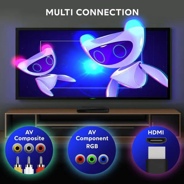 - HDMI converts up to 1080p. Includes AV cableand a remote control (2 AAA batteries not included).