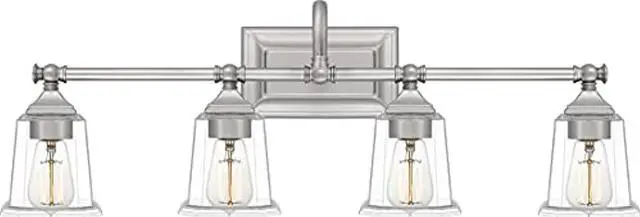 California Proposition 65: This product contains a chemical known to the State of California to cause birth defects or other reproductive harm. The Nicholas collection gives a solid nod to mid century style. The streamlined silhouette is finished in Brushed Nickel, Polished Chrome, or Earth Black to compliment a variety of home styles. The tapered square glass shades gives this design an edge and it is complemented beautifully by the rectangular backplate. All bath fixtures can be mounted as uplights or downlights and are offered in several sizes.