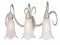 The Bella collection features a brushed nickel finish with white alabaster glass shades. The shades are delicately scalloped softening the overall feel. Elegantly scrolled arms complete the look of this transitional family of fixtures. This fixture may be mounted up or down. Choose from a variety of sizes for the perfect fit in your space.