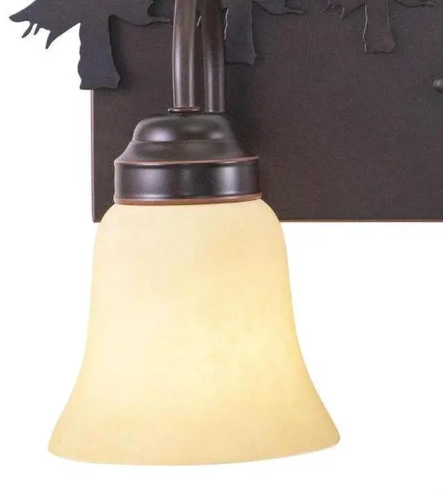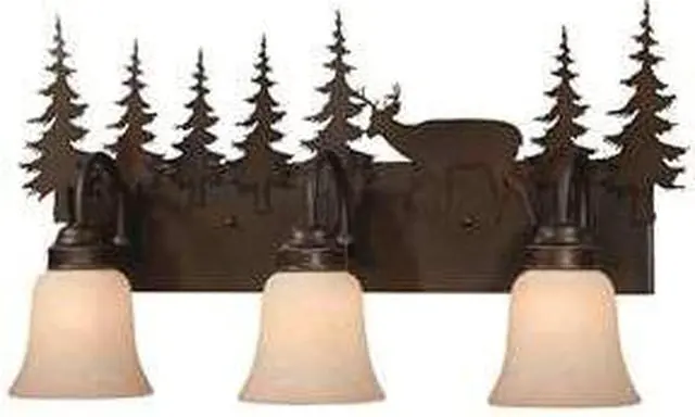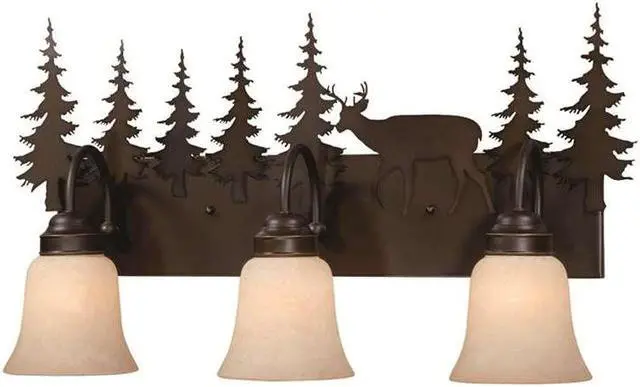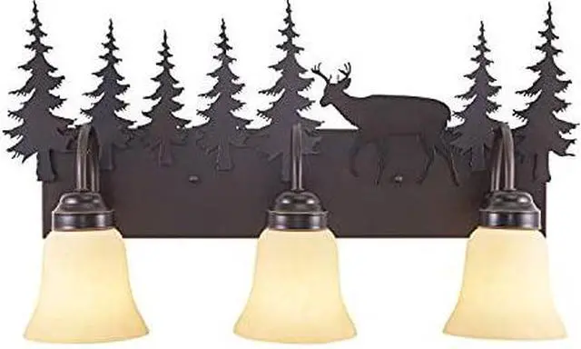 Evoking the spirit of the wilderness, this rustic themed light is clad in a burnished bronze finish and features silhouetted deer imagery atop glowing amber flake glass. The classic form of this lamp makes it a great choice for a vacation lodge, cabin or a suburban home - it will complement a variety of home styles: anywhere you want to bring an element of nature. Medium screw base lamping provides maximum light output, and flexibility in bulb choice.