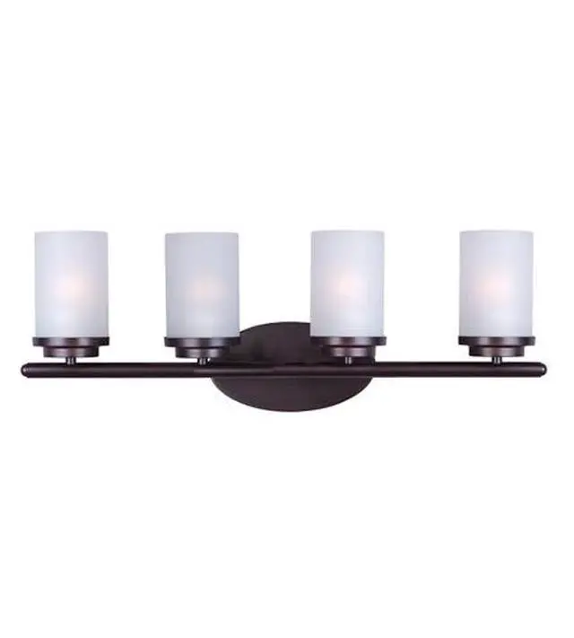 Minimalistic frames finished in your choice of Oil Rubbed Bronze or Polished Chrome support cylinders of Frost glass shades. A clean contemporary look at a very affordable price.
