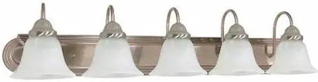 NUVO 60-323 Ballerina 5 Light 36 in. Vanity Alabaster Glass Bell Shades,