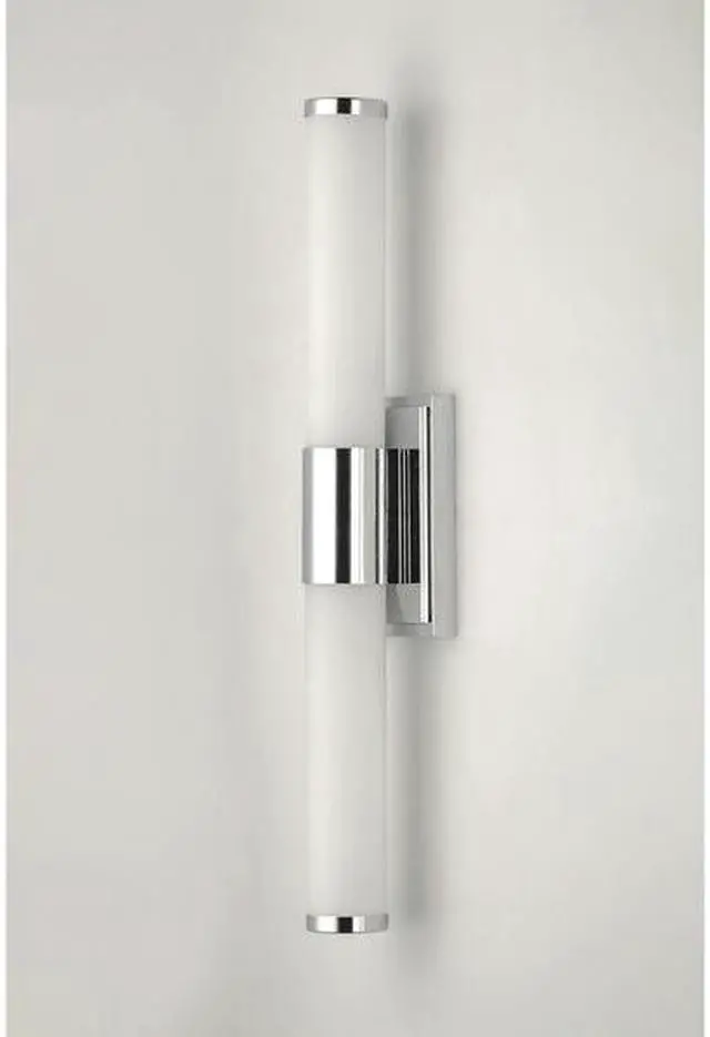 California Proposition 65: This product contains a chemical known to the State of California to cause birth defects or other reproductive harm. Cylinders of White cased glass are mounted onto a cast aluminum frame of Satin Nickel or Polished Chrome. LED modules evenly illuminate and provide soft yet ample illumination. Multi volt input is standard which allows for installation into commercial applications.
