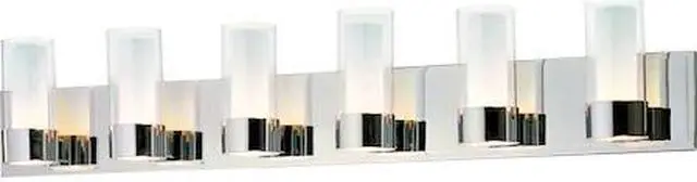 California Proposition 65: This product contains a chemical known to the State of California to cause birth defects or other reproductive harm. The Silo collection makes artful use of thin-profile rectangular tubing with a mirror-like Polished Chrome finish for a clean, contemporary look. A subtle Frost on the underside of the two cylindrical glass shades adds softness to the sleek lines, while the bright Xenon lamps are cleverly concealed in the cast metal ring allowing ample light to cast both upwards and downwards without glare.