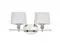 California Proposition 65: This product contains a chemical known to the State of California to cause birth defects or other reproductive harm. Cool, clean and contemporary are just a few words to describe the Rondo collection. Rectangular arms are bent to form graceful curves and are finished in Polished Nickel. The sharpness of the frame is softened with the use of round crystal glass balls. The White fabric shades are fit with white diffusers that evenly light the room.