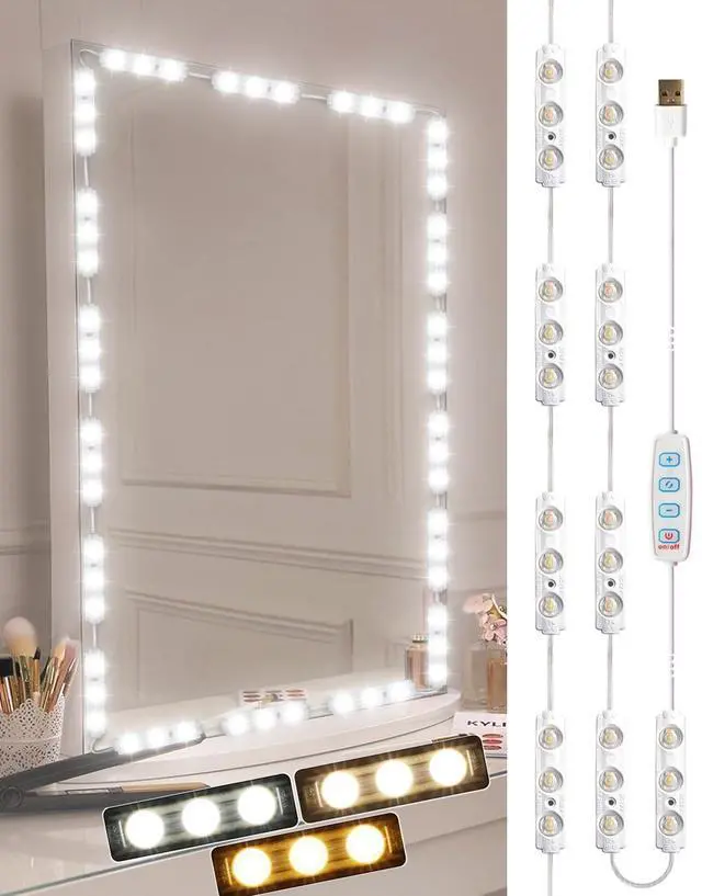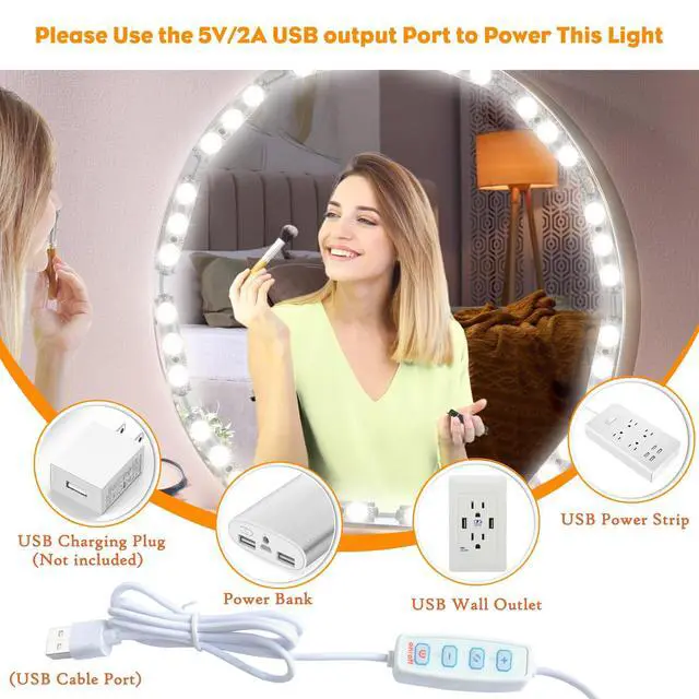 - The brightness of this Hollywood style LED makeup light strip can be adjusted as needed.