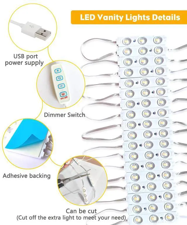 - Led vanity mirror lights is easy to install, fits any shape of mirrors.