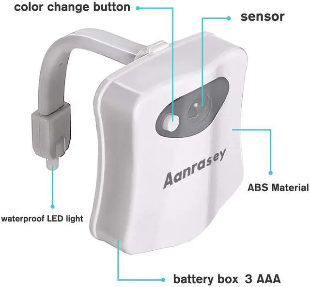 Convenient and versatile bathroom lighting with motion activation and multiple color modes, Battery, Night Light, Aanrasey