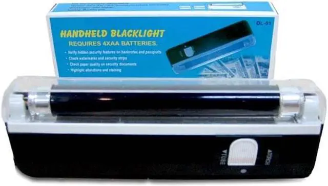 Our portable UV Black Light is a versatile tool that functions as both a torch and a money detector with a powerful mini flashlight built in. This lightweight device is easy to use and compact measuring 16.3 by 5.6 by 2.2 cm and weighing only 3.1 oz. Featuring a long wave UV light it is designed to be gentle on your eyes while effectively verifying hidden security features on banknotes and passports. The power supply requires 4 AA batteries not included ensuring convenience and portability. This UV Black Light is perfect for checking watermarks security strips and paper quality on various documents making it a reliable tool for authentication.
