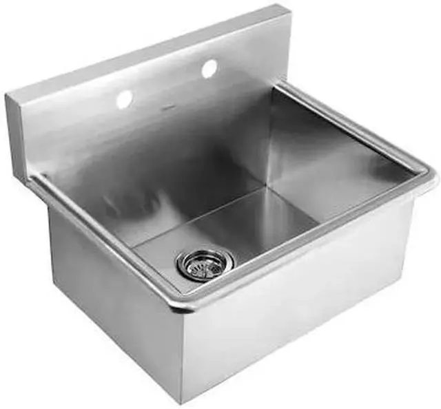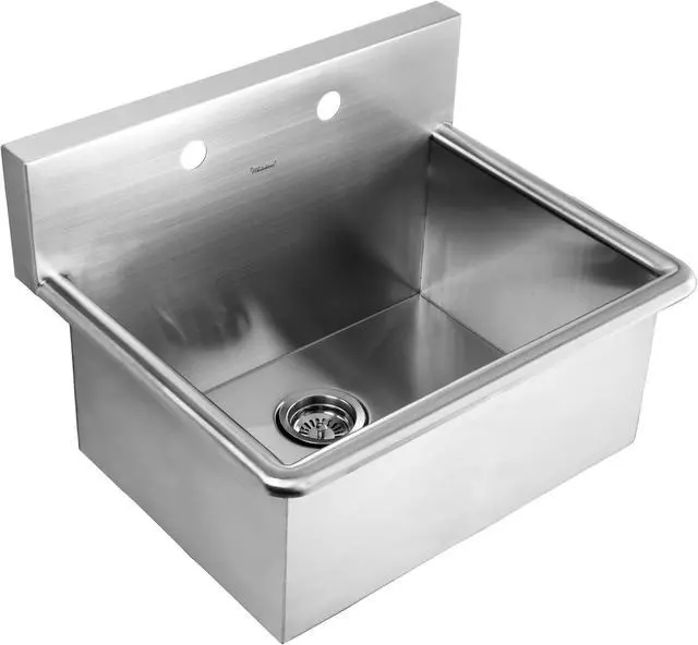 18 Gauge- 304 series stainless steel.18/8 Chrome and nickel content.3-1/2- Rear center drain opening.2 Pre-drilled holes 8- apart- ready for wall mounted faucet.Fully undercoated over sound deadening pads.Bowl has four diagonal grooves to channel water directly to drain.Finish: Brushed Stainless Steel.Dimensions: 25- x 19-1/2- x 16-1/2-.