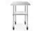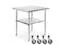 This heavy-duty table by Gridmann is constructed from 18-gauge #430 stainless steel, and is the perfect work surface for use in a kitchen, bar, restaurant, laundry, school, hospital, or any other commercial setting. It is NSF certified to meet strict standards for public health protection and built for high-volume use to last a lifetime. This table features an extra heavy-duty top, an adjustable-height galvanized under-shelf, and galvanized legs with adjustable non-marring feet that eliminate table wobble on uneven floors. The edges on the front and back of the tabletop are rounded for working comfort. The heavy duty set of 4 premium casters is specifically designed for Gridmann stainless kitchen prep tables but will fit any legs with a 1-1/2" diameter opening. The composite 4 inch wheel is chemical resistant and built for use in the commercial kitchen environment. Each wheel is rolls smoothly and they easily pivot on a full set of ball bearings. The wheels are non-marring and work on almost any surface like tile, concrete, and wood. Two of the wheels have an integrated brake that can be locked down to keep your table in place. The wheels arrive fully assembled and are ready to slide into the legs. Each wheel includes a rubber compression fitting at the top so you can tighten the top ring to get the right fit inside the table leg. Overall wheel size - 7-3/4" tall (this will raise the table by 5 inches), 5-1/4" wide , and the wheel is 4" in diameter. Fast and easy assembly. All table sizes are 34-1/2" tall. Includes: Stainless steel table with base, instructions, and hardware for assembly. ***This product is designed and finished for use in a commercial environment. Therefore surface imperfections such as scratches, scuffs and indents may be found. This is normal and to be expected on products of this nature***