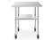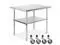 This heavy-duty table by Gridmann is constructed from 18-gauge #430 stainless steel, and is the perfect work surface for use in a kitchen, bar, restaurant, laundry, school, hospital, or any other commercial setting. It is NSF certified to meet strict standards for public health protection and built for high-volume use to last a lifetime. This table features an extra heavy-duty top, an adjustable-height galvanized under-shelf, and galvanized legs with adjustable non-marring feet that eliminate table wobble on uneven floors. The edges on the front and back of the tabletop are rounded for working comfort. The heavy duty set of 4 premium casters is specifically designed for Gridmann stainless kitchen prep tables but will fit any legs with a 1-1/2" diameter opening. The composite 4 inch wheel is chemical resistant and built for use in the commercial kitchen environment. Each wheel is rolls smoothly and they easily pivot on a full set of ball bearings. The wheels are non-marring and work on almost any surface like tile, concrete, and wood. Two of the wheels have an integrated brake that can be locked down to keep your table in place. The wheels arrive fully assembled and are ready to slide into the legs. Each wheel includes a rubber compression fitting at the top so you can tighten the top ring to get the right fit inside the table leg. Overall wheel size - 7-3/4" tall (this will raise the table by 5 inches), 5-1/4" wide , and the wheel is 4" in diameter. Fast and easy assembly. All table sizes are 34-1/2" tall. Includes: Stainless steel table with base, instructions, and hardware for assembly. ***This product is designed and finished for use in a commercial environment. Therefore surface imperfections such as scratches, scuffs and indents may be found. This is normal and to be expected on products of this nature***