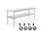 The heavy duty set of 4 premium casters is specifically designed for Gridmann stainless kitchen prep tables but will fit any legs with a 1-1/2" diameter opening. The composite 4 inch wheel is chemical resistant and built for use in the commercial kitchen environment. Each wheel is rolls smoothly and they easily pivot on a full set of ball bearings. The wheels are non-marring and work on almost any surface like tile, concrete, and wood. Two of the wheels have an integrated brake that can be locked down to keep your table in place.