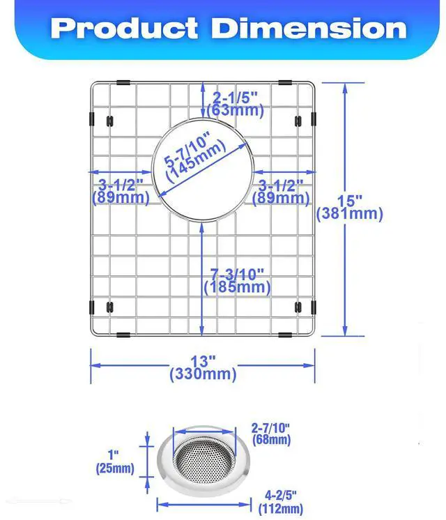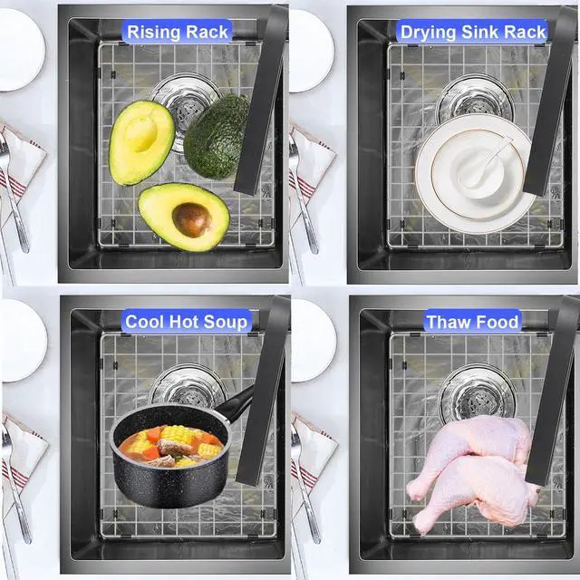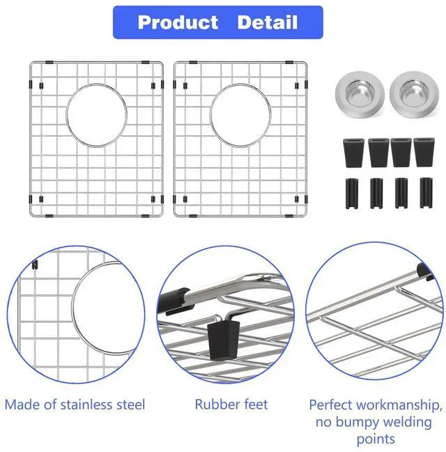Package 2 sink shelves for the bottom of the kitchen sink and 2 sink filters. If you are not completely satisfied with your premium sink rail, simply return it for your first 30 days for a full refund.