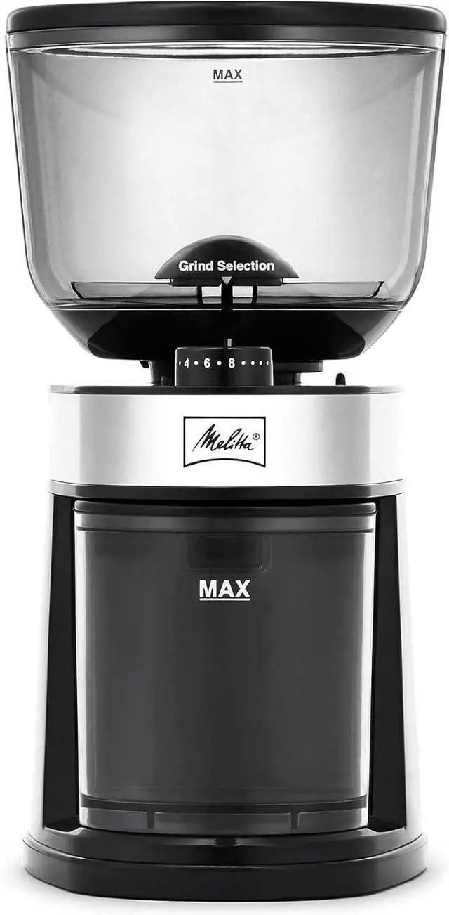 Melitta Molino Flat Burr Coffee Grinder | Whole Bean Grinder | Easy Clean & Assembly | Safety Lock Feature | with Cleaning Brush and Spoon Included |Capacity: 8 oz (225g) | 14 cups
