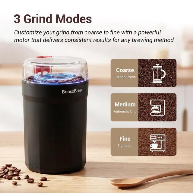 One Touch, Perfect Grind with BonsoBrew Electric Coffee Grinder
