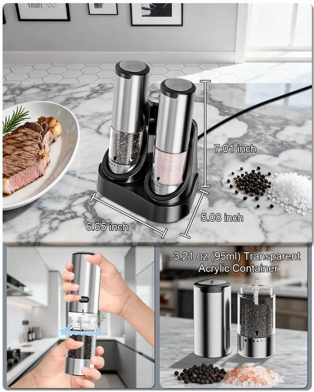 Equipped with a powerful motor, it can easily grind various spices such as Himalayan powder salt and black pepper grains. Say goodbye to manual labor! Our automatic electric grinder can produce powder with just one click.