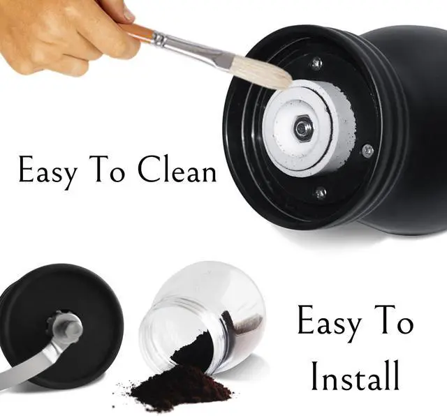 - Fast Manual Burr Grinder: Grinding enough beans for two cups of coffee (drip maker) takes just 30 seconds.
