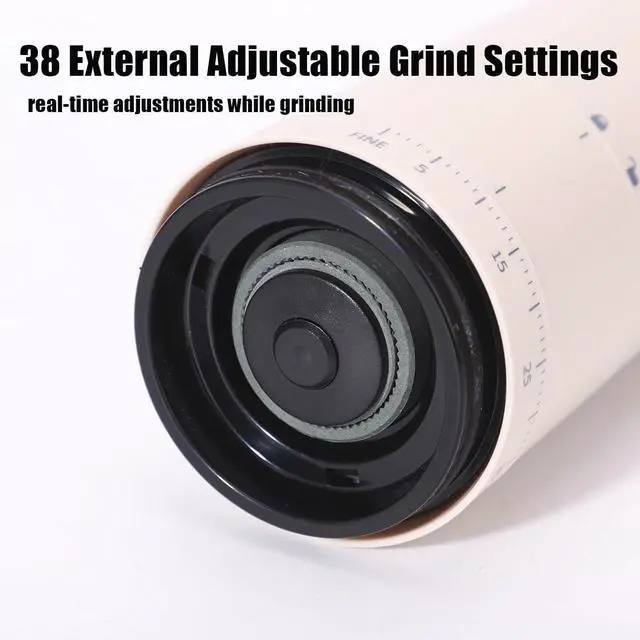 38 precise external grind settings with clear tactile feedback. Easily adjust from fine to coarse for any brewing method, with accurate scale markings for perfect flavor control.