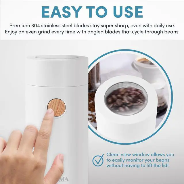Simply add your favorite coffee beans, peppercorns, or dried spices—Aroma’s powerful 150W motor handles it all in seconds. The compact design and 40g capacity make it ideal for quick single servings or full pots.