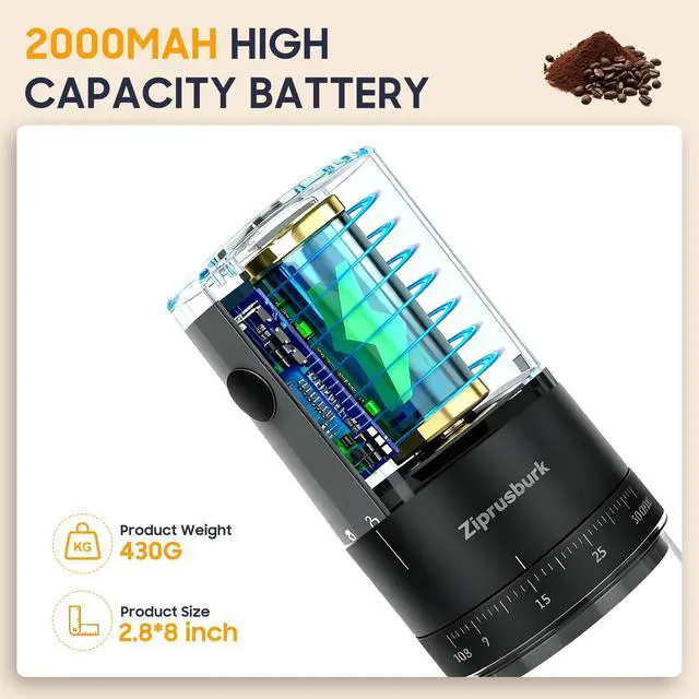 2000MAH HIGH-CAPACITY BATTERY - Grind All Day, Anywhere Dead batteries? Not here.With a massive 2000mAh battery, enjoy up to 30+ grinds per chargeenough for weeks of daily use. Plus, Type-C fast charging means less waiting, more doing.
