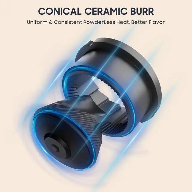 38 EXTERNAL ADJUSTMENTS - Dial Your Perfect Flavor. No more messy internal settings. Rotate the external adjustment ring to choose from 38 precise grind levelsfrom coarse French press to fine espresso. Avoid the frustration of inconsistent grinds and unlock a world of flavors, whether youre brewing at home, the office, or a mountain campsite.