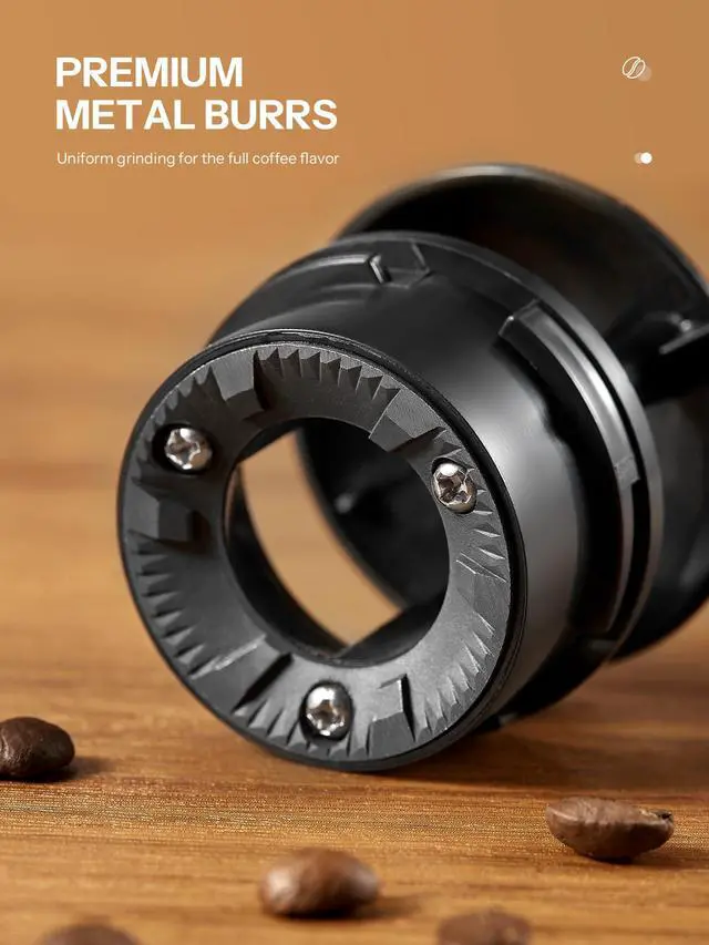 Adjustable Grinding Settings: Simply adjust the sliding dial on the side, from ultra-fine to ultra-coarse, for precise grinding. Whether it's espresso or French press coffee, it's easy to get the right coffee powder.
