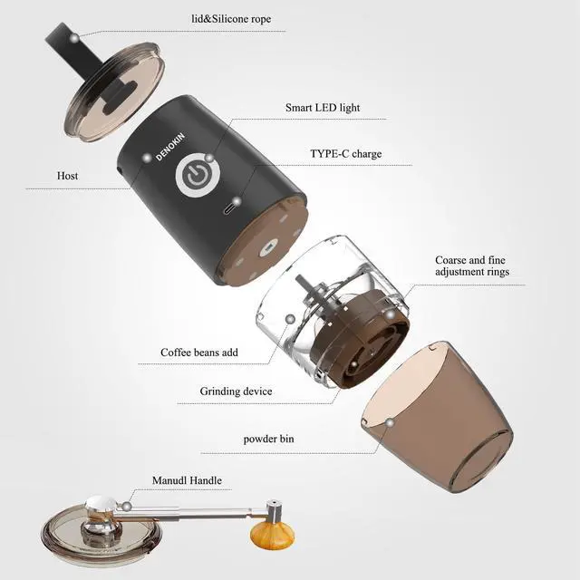 Compact, convenient and powerful, it will prime your favorite roast coffee and grainding the quality of your coffee,situablefor camping, picnic, office,kitchen. Conical burr grinder.