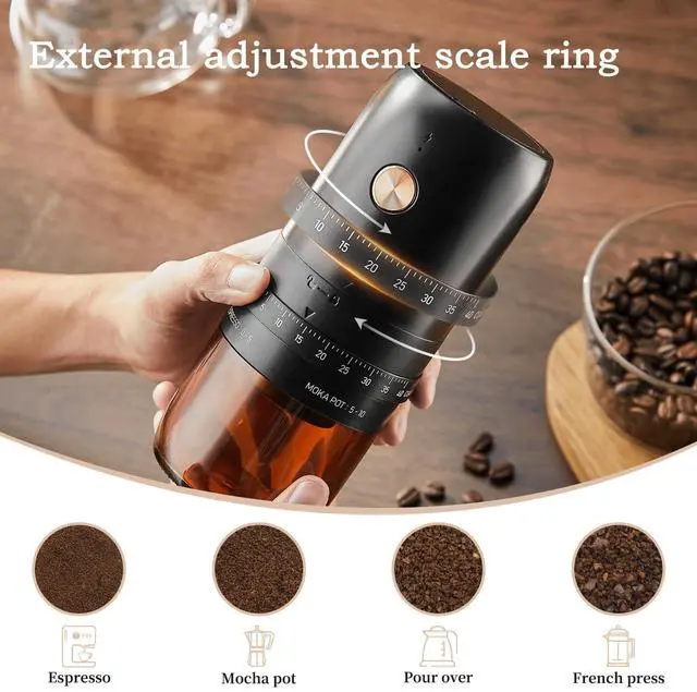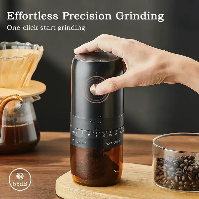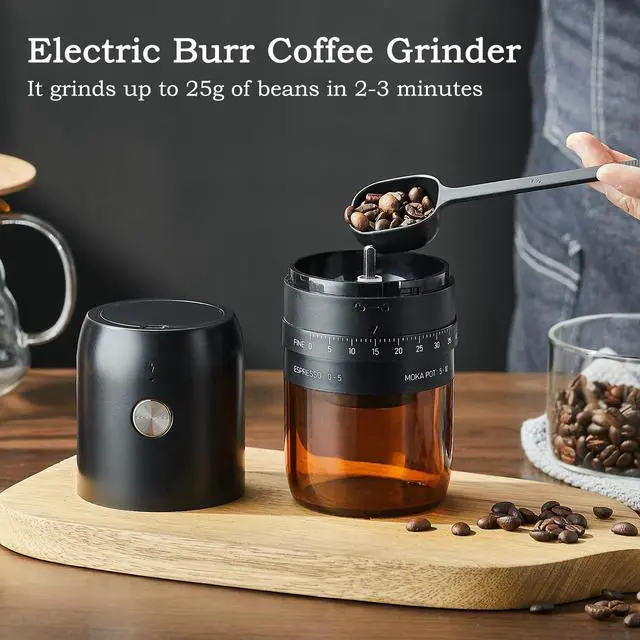 [Customize Your Coffee] Elevate your coffee experience with our versatile burr grinder. Adjust the grind for Italian espresso to French press. It grinds up to 25g of beans in 2-3 minutes.