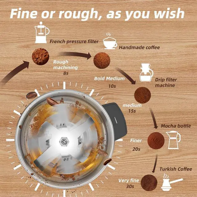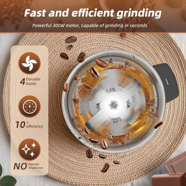 Using high quality stainless steel to make the machine robust and stable. The blade is sharp, so the coffee is ground evenly