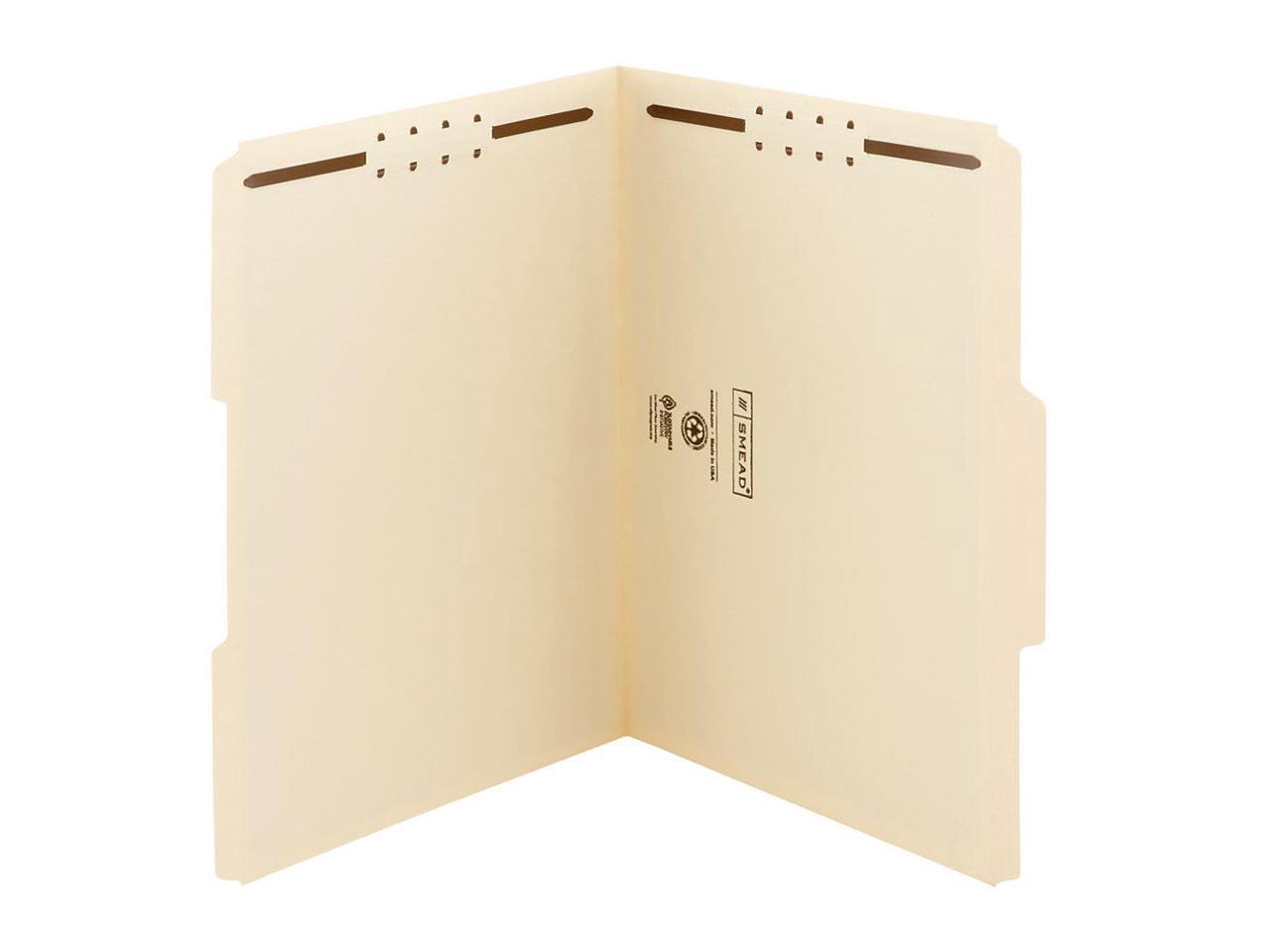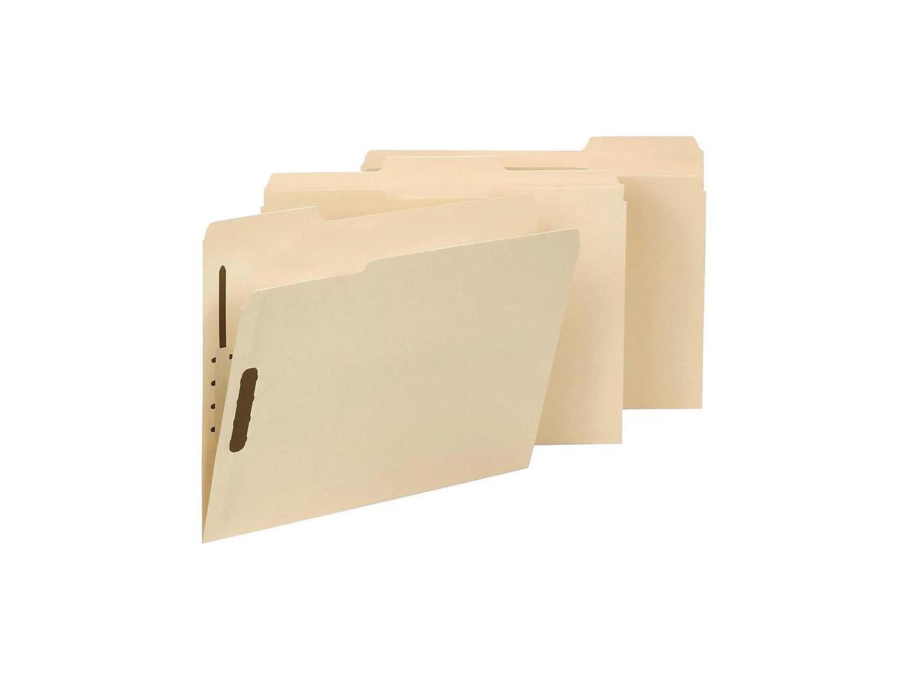 Smead 1/3 Tab Cut Letter Recycled Fastener Folder - 8 1/2" x 11" - 2 x 2K Fastener(s) - Top Tab Location - Assorted Position Tab Position - Manila - Manila - 10% - 50 / Box