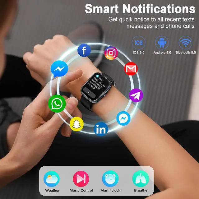 Bluetooth 5.3 Call and Message Reminder: The watches for women adopt bluetooth 5.3 version for a faster and more stable connection between your mens watches and smartphone. With the built-in microphone and Hi-Fi speaker that minimize background noise, you can receive and make clear calls directly from your watch. It will also alert you when there are text messages or notifications from social media like Facebook, WhatsApp and Twitter, you will never miss an important message or notification.