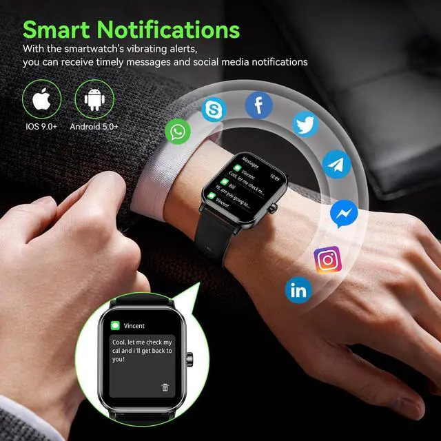 | Special Feature | Bluetooth Call, Message Reminder, 5 ATM Waterproof, 300+ Watch Faces, 130+ Sports Modes, 1.85'' HD Touch Color Screen, Custom Wallpaper, Health Monitoring, Fitness Tracker, Activity Tracker, Stopwatch, Timer, Weather Display, Alarm Clock, Camera Control |