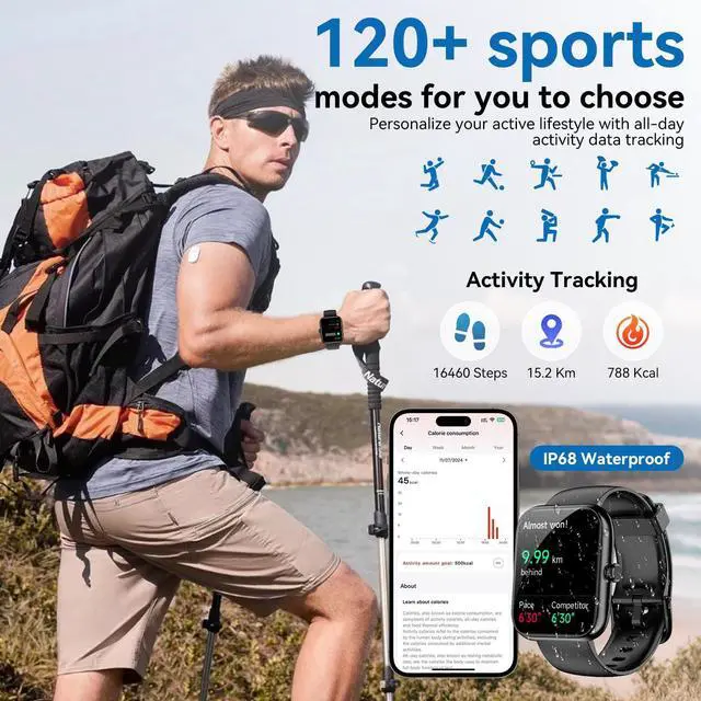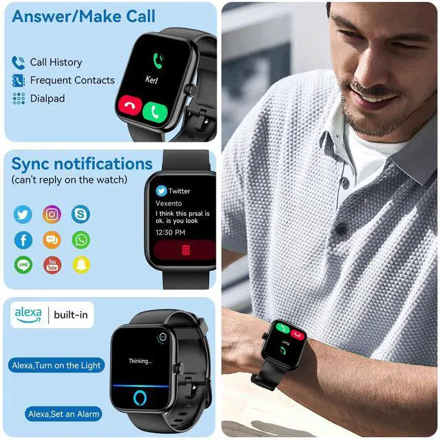 Smart Watch with Alexa Built-in, 1.83" HD Health Fitness Tracker, Bluetooth Calls/Notifications, 120+ Sports Modes, 24/7 Heart Rate/Sleep Tracking, IP68 Waterproof for iPhone and Android