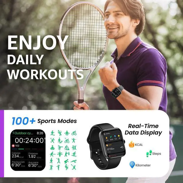 - [Perfect for Sports and Outdoor Activities] Whether you're hiking, cycling, running, or participating in other outdoor sports, this watch can meet your needs. It supports over 100 sports modes, automatically records your exercise data, helps you better understand your physical condition, and is the ideal companion for fitness enthusiasts.