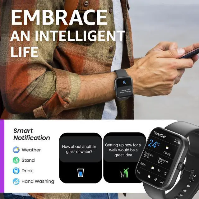 - [Receive notifications directly on your wrist] Allows you to receive text messages and app notifications directly on your watch. Whether at work, working out, or out and about, you'll stay updated and never miss important reminders, without having to take out your phone.