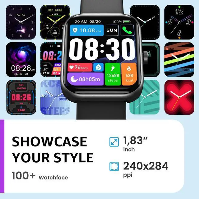 S3 Smart Watch for Men Women for iPhone&Android, 1.83" Fitness Tracker Bluetooth Call [Answer/Make], IP68 Waterproof Sleep Monitor, 100+ Sport Modes Black