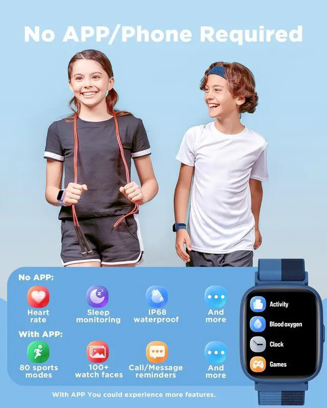• Without/With APP: BIGGERFIVE kids fitness tracker watch can be used seperately without APP and phone. But with APP, you could explore more functions. Compatible with Android 6.0+ and iOS 9.0+ smartphones.