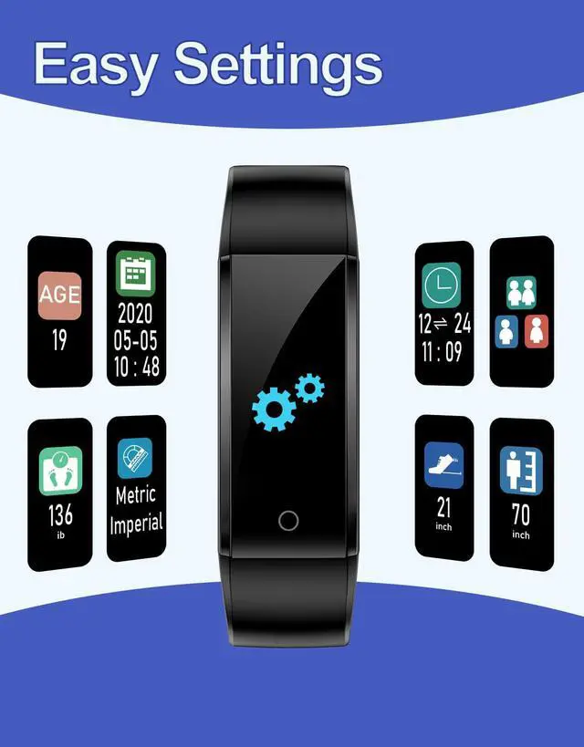 Please set the date, time, gender, age and so on in the watch first. Tap the circle touch button once to cycle through the menu and change options in the settings. Press and hold the touch button (3 seconds) to go to next screen or save the settings.